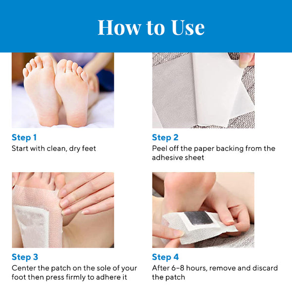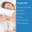The best part about these foot pads is how easy they are to use. All you have to do is take one adhesive sheet and slowly peel off the paper. Place each patch at the bottom middle of your foot/sole. Wear the socks to sleep. Once finished, simply remove and discard the patch after 6-8 hours! Gently wipe your feet with a wet paper towel to remove any excess adhesive.
