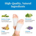 Ingredients: The Natural detox foot patch is made from a combination of all-natural ingredients: Wood Vinegar Extract, Bamboo Vinegar Extract, Chitin & Chitosan, Tourmaline, Vitamin C, Vegetable fiber, Minus Ion Powder, Ginger, and Dextrin.