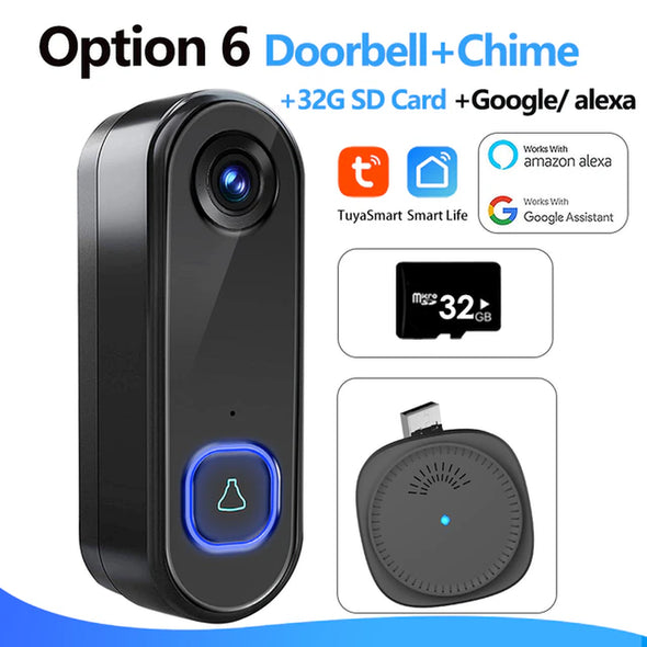 6️⃣ WiFi Doorbell + 32GB SD Card + Google Home / Alexa Voice Control