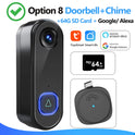 8️⃣ WiFi Doorbell + Indoor Chime + 64GB SD Card + Google Home / Alexa Voice Control